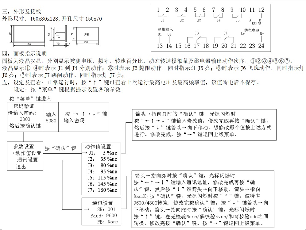 6,繼電器接點容量:J1-J5≤30W(感性),J6-J7≤50W(感性)。AC220V,5A(阻性)