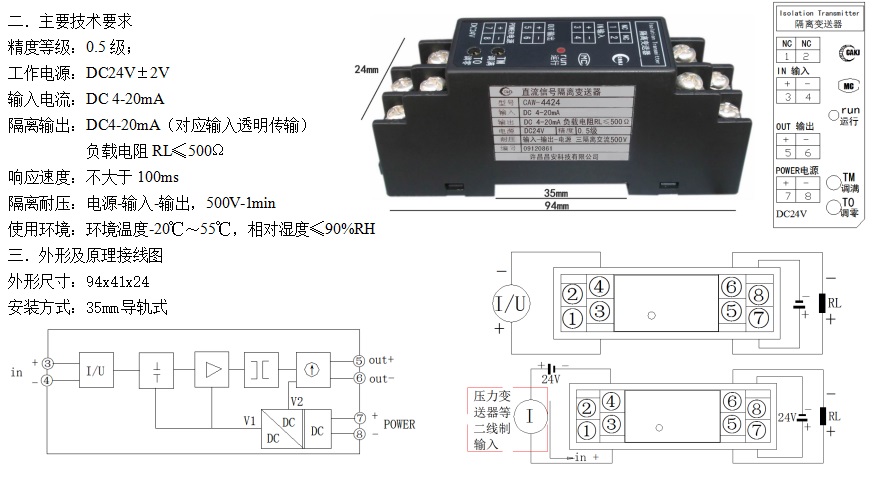 規(guī)范:4-20mA轉(zhuǎn)4-20mA  電源DC24V
