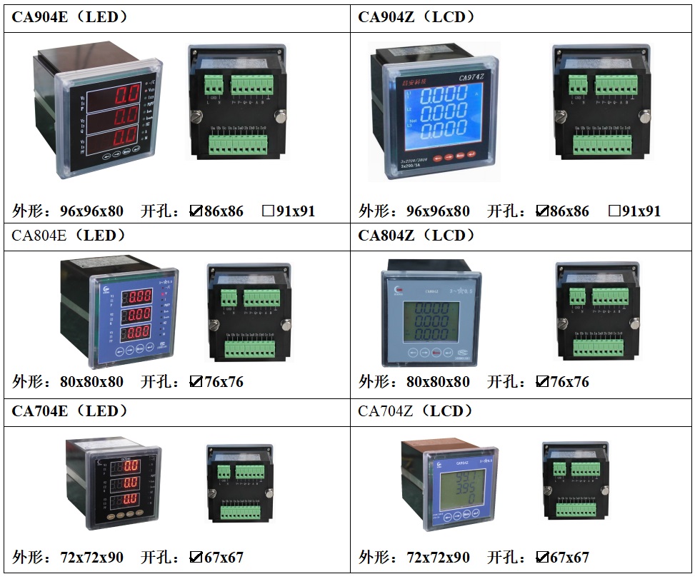 CA900E系列產品是一種具有可編程測量、顯示、數字通訊和電能脈沖變送輸出等功能的多功能智能電表,能夠完成電量測量、電能計量、數據顯示、采集及傳輸,可廣泛應用變電站自動化、配電自動化、智能建筑、企業內部電能測量、管理、考核。測量精度為0.5級,實現LED現場顯示和遠程RS-485數字接口通訊、采用MODBUS通訊協議。