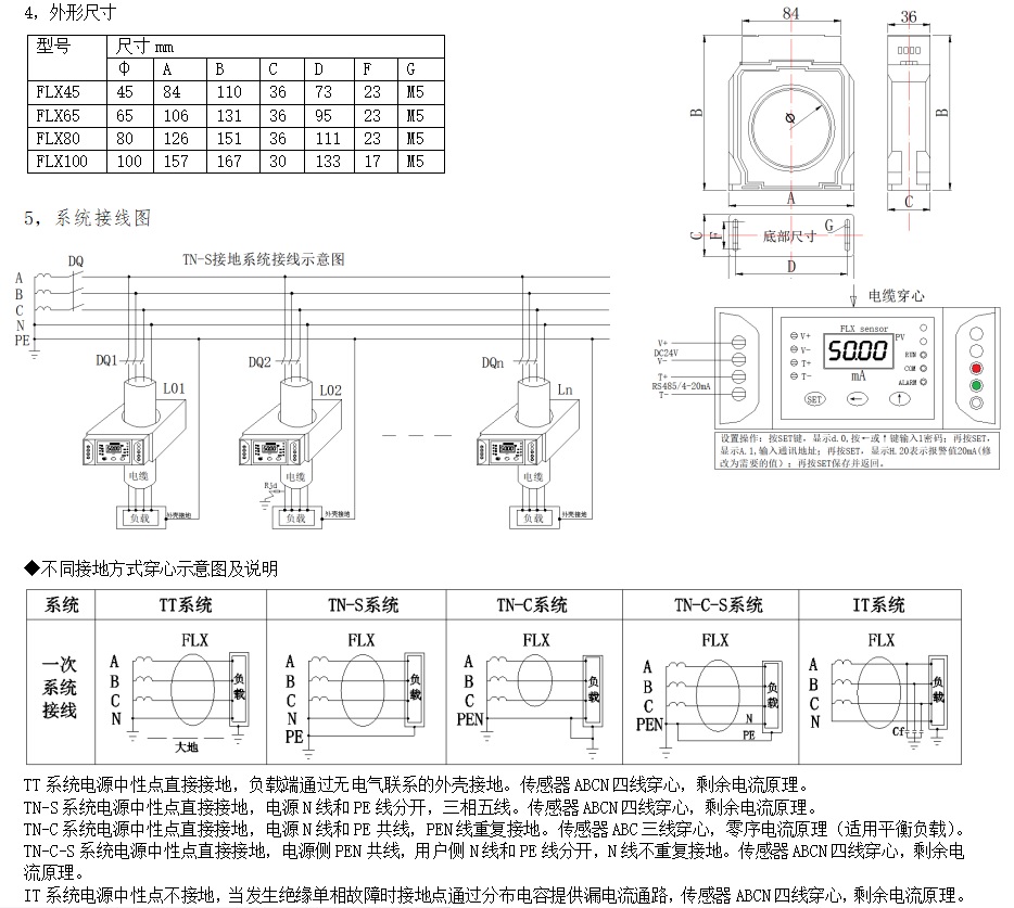 FLX系列智能漏電流絕緣傳感器,采用剩余電流或零序電流原理監測電力高低壓回路單相接地漏電流,并以數字形式(485通訊)或模擬量形式(4-20mA)為零序小電流數據采集提供有效信息。可作為絕緣在線監測故障定位傳感器、小電流接地選線裝置的小電流采集模塊。